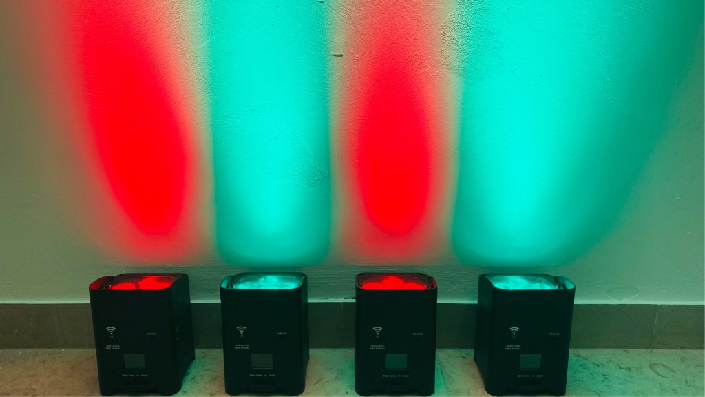 10er Case mit Akku Strahler, perfekt als Uplight für Ihre Feier.